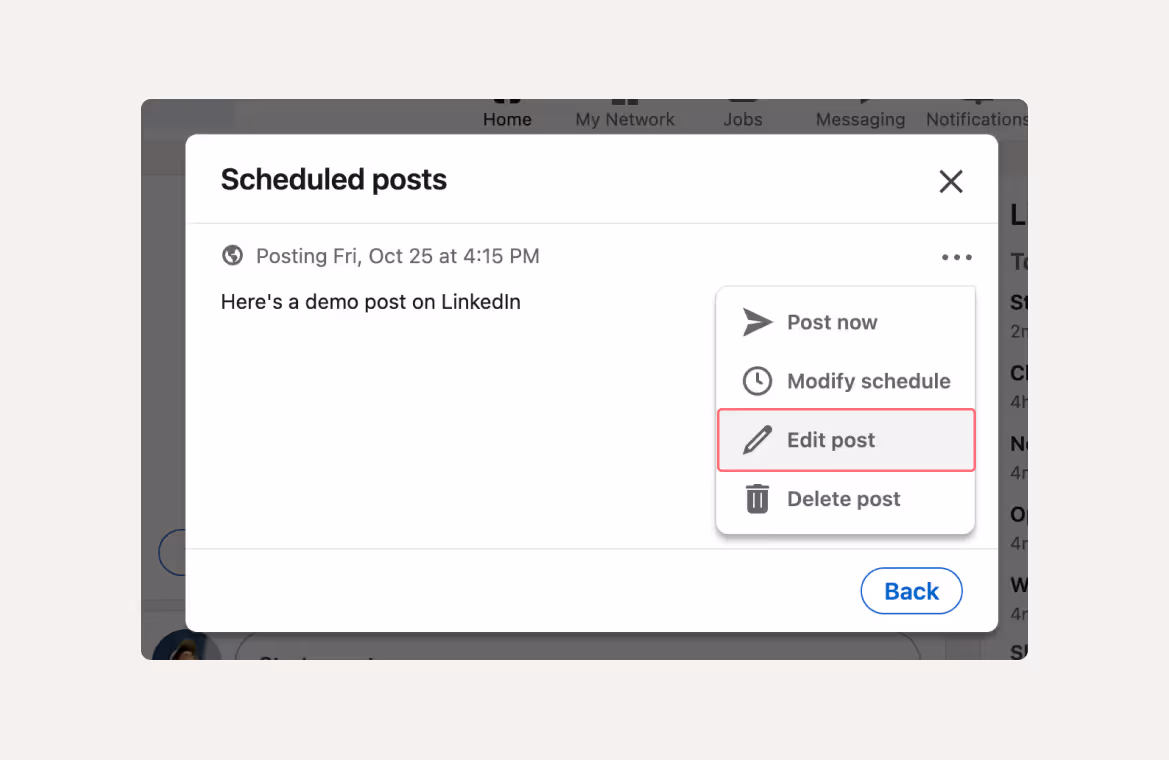 - Navigate to Scheduled Posts: Follow the steps above to view your scheduled LinkedIn posts.