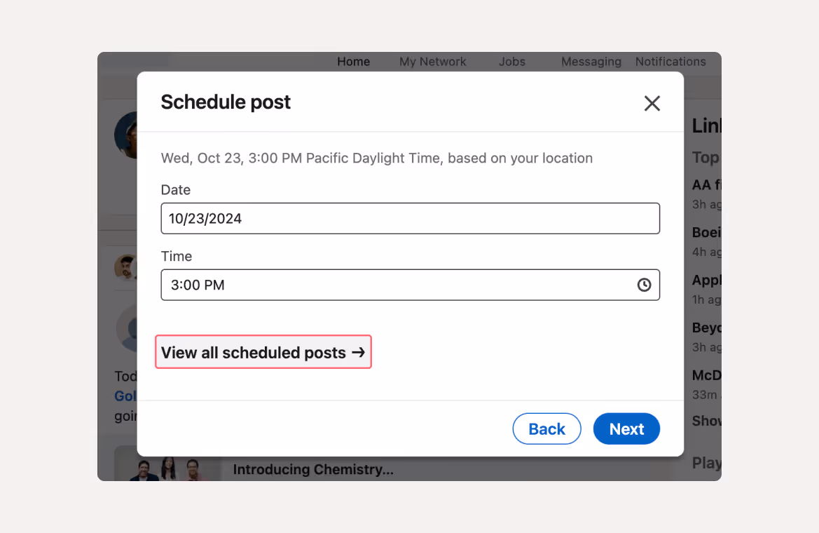 - Confirm Scheduling: Click "Next", then "Schedule" to confirm your scheduled LinkedIn post.