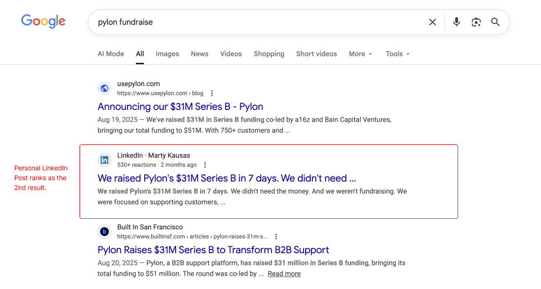 If you're a B2B SaaS founder focused on growth, we have news that will change how you think about content marketing: Your LinkedIn posts are now showing up in Google search results.