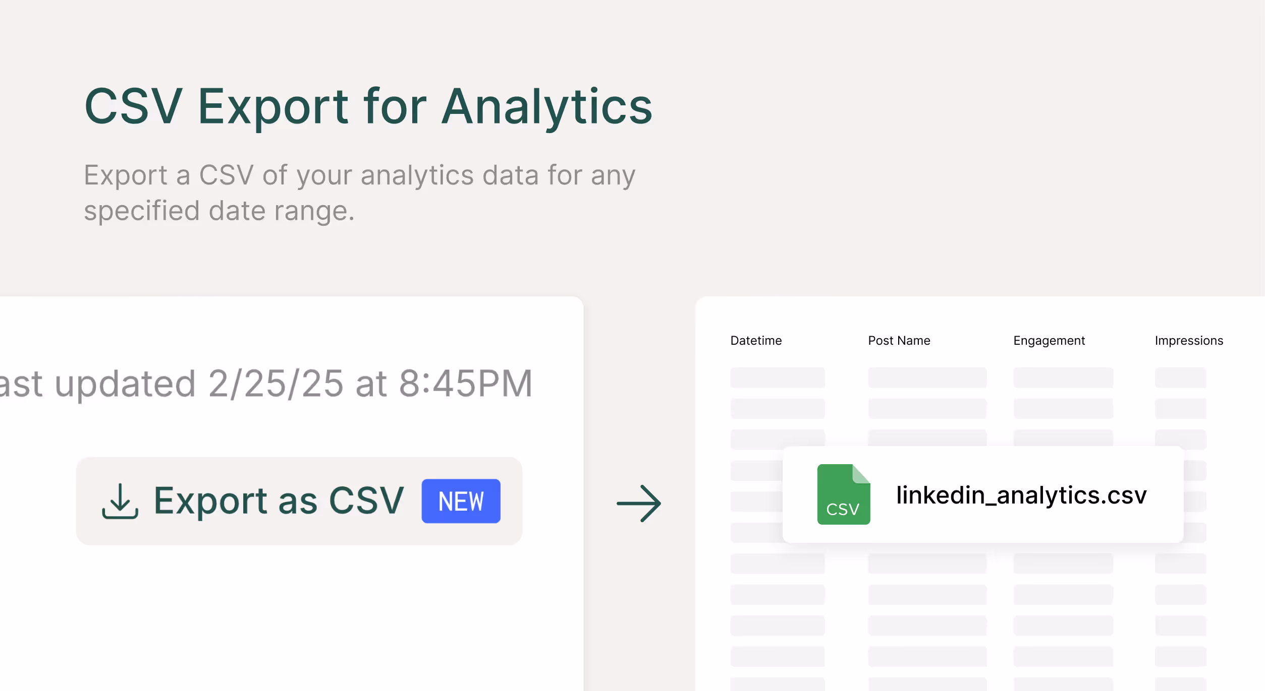 You can now export your analytics data to a CSV in Ordinal. Just select a timeframe and hit the "Export as CSV" button.
