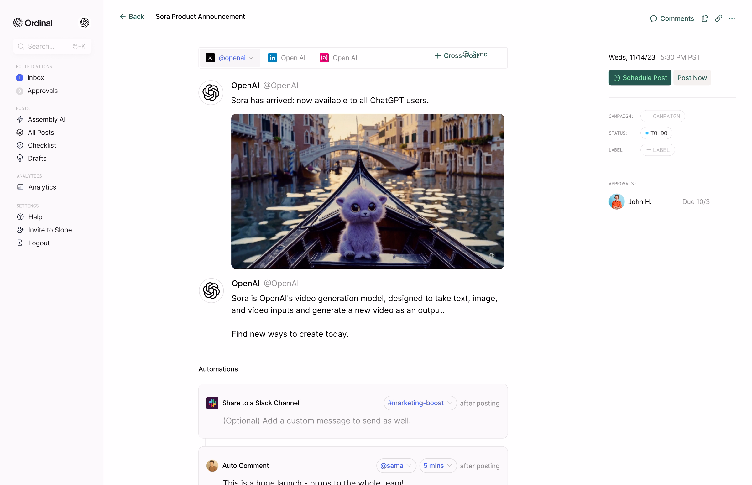 More than just a scheduling tool - Ordinal is built for teams that take scaling their business on socials seriously. Ordinal comes out the box with robust analytics for Twitter.